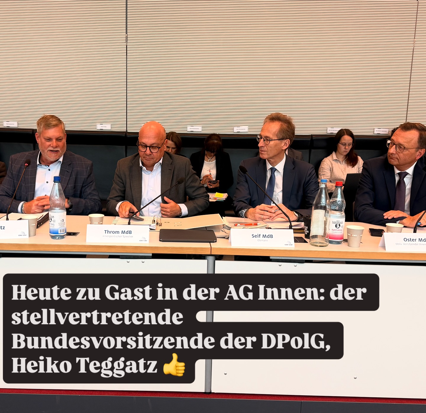 Mit Heiko Teggatz, dem stellvertretenden Bundesvorsitzenden der Deutschen Polizeigewerkschaft (DPolG), haben wir uns heute Morgen in der AG Innen ausgetauscht. Danke für die guten Gespräche! 👍
